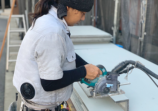 お客様に喜んで頂けるような施工、明るい現場を目指して頑張ります。